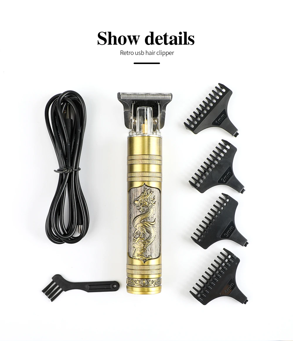 Характеристика:Превосходное лезвие: Точная стальная режущая головка безопасна и острее, не легко нагревается, обеспечивая эффективность и долговечность.Большая мощность: большая мощность обеспечивает сильную силу для более эффективного и стабильного стрижки волос. Низкий уровень шума обеспечивает удобство использования.Удобный для пользователей дизайн: корпус устройства с противоскользящими узорами обеспечивает стабильность, одна Нижняя кнопка для мгновенного включения и выключения, 4 предельных гребня отвечают более личным потребностям.Портативный и легкий: 15x3,1 см, удобный в натуральную величину машинка для стрижки волос может быть проведена для удобно использовать и переносить вместе для путешествий, а также.Безопасное и долговечное использование: удобная перезаряжаемая конструкция, 2-3 часа зарядки обеспечивает примерно 70 минут использования.Спецификация:Материал: нержавеющая сталь, алюминиевый сплавИсточник питания: Перезаряжаемый USBМощность: 3 ВтНапряжение: DC5VЕмкость аккумулятора: 800 мАчВремя зарядки: 2-3 часаВремя использования: прибл. 70 минутПодходящие толпы: как для детей, так и для взрослыхДлина usb-кабеля: 102 см ± 2 смРазмер изделия: 15х3, 1 см