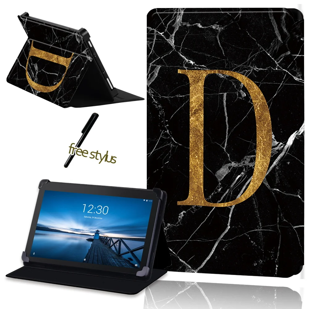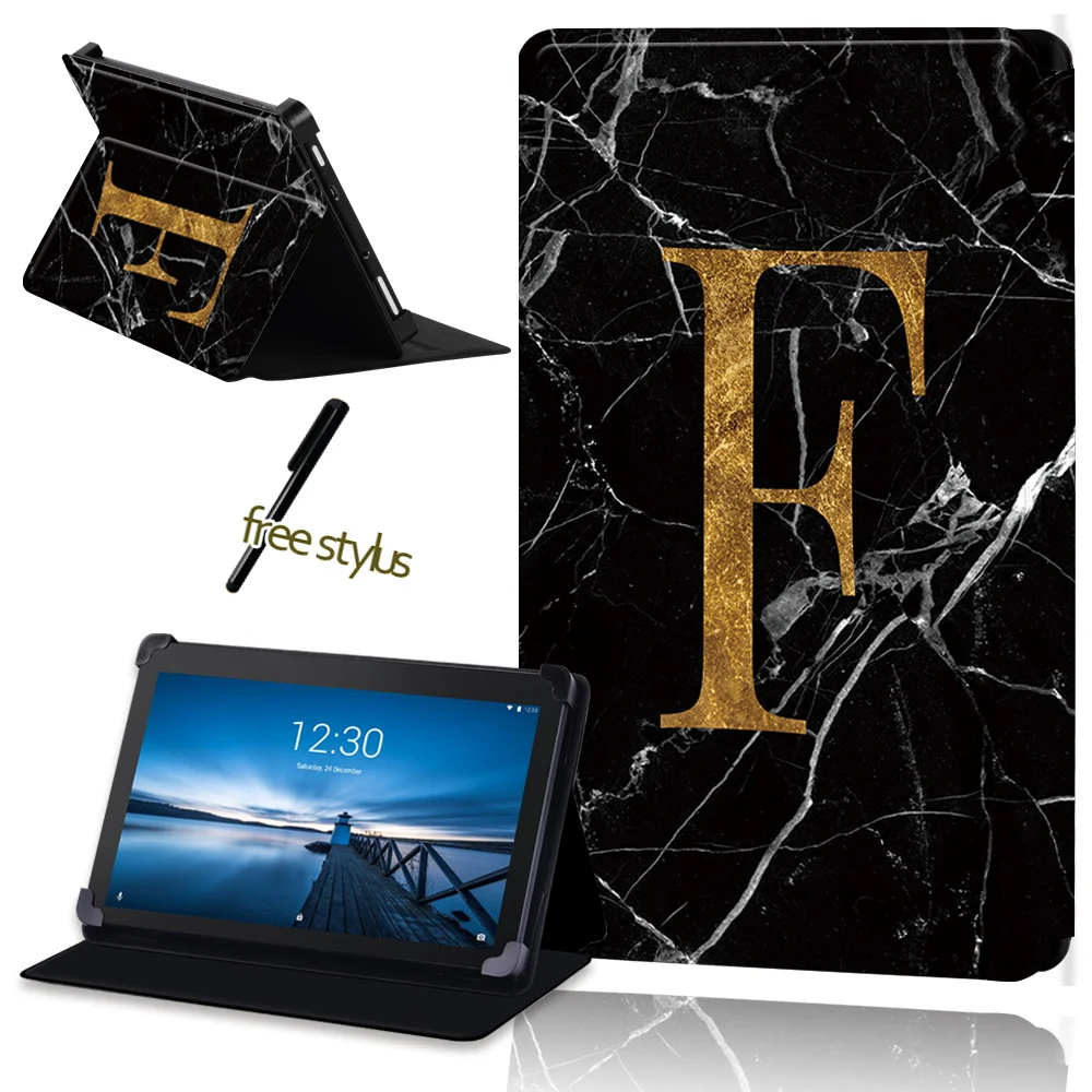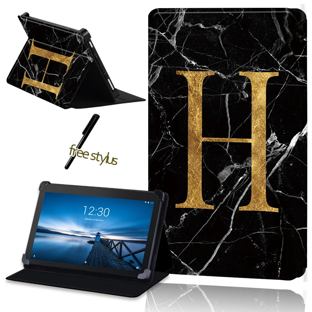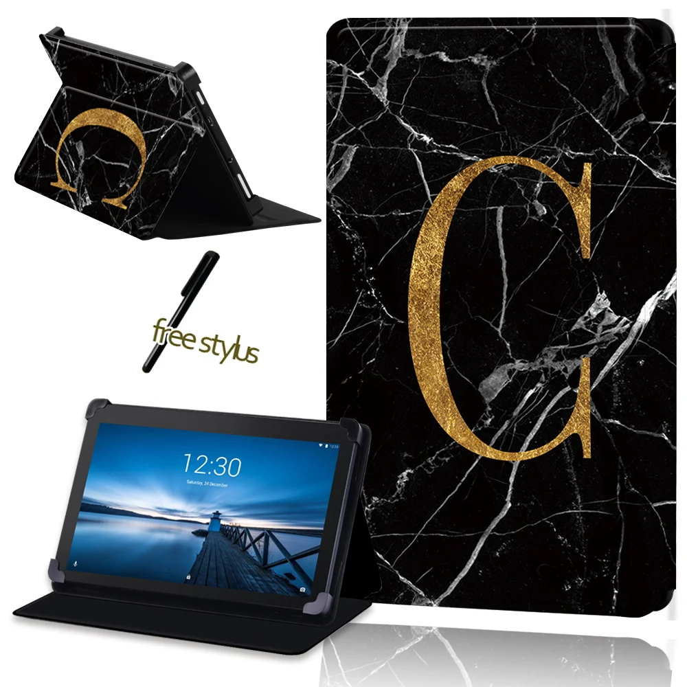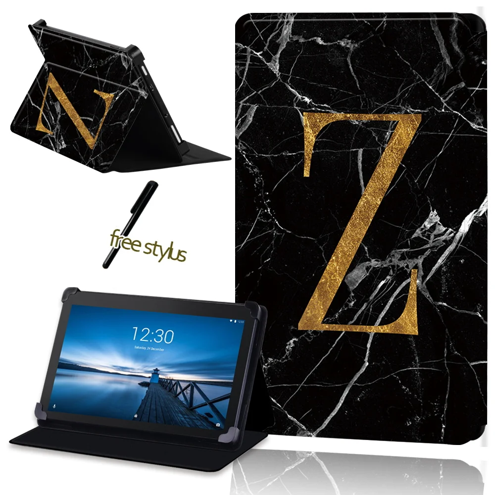 Чехол для планшета из ПУ кожи с защитой от падения для Lenovo Tab E7 Tab E8 Tab E10, универсальный защитный чехол с узором из черного мрамора + стилус