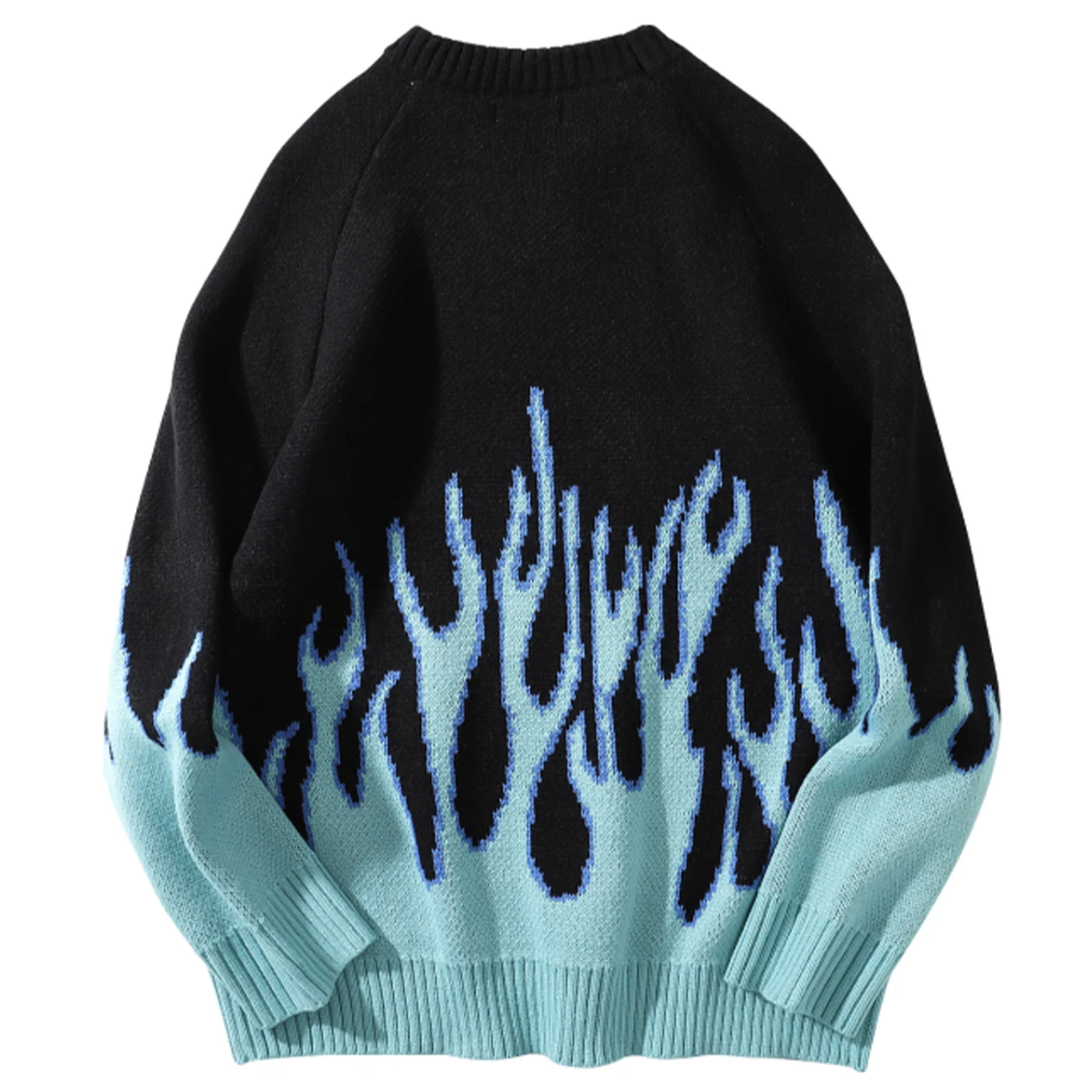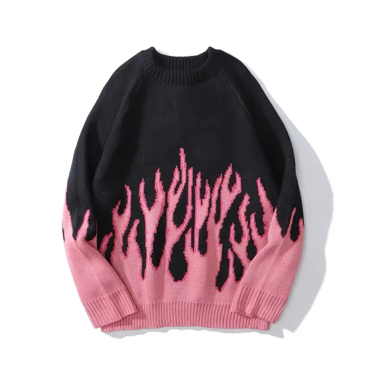 Осень 2020, вязаный свитер, пуловер, Мужская Уличная одежда в стиле хип-хоп, Свитера с синим огненным пламенем, топы в стиле Харадзюку, повседневный черный свитер для пар