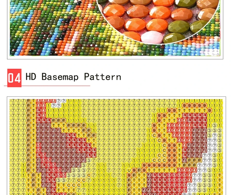 1. См. Таблицу сравнения на холсте, чтобы определить каждый номер алмаза, который соответствует области печати на холсте. 2. Заполните ручку glu, поместите алмазы в тарелку. 3. Используйте головку ручки, чтобы наклеить несколько алмазных сверл. 4. Разорвите частичную пленку и наклейте ее на холст, указав соответствующий номер. 5. Пинцет может легко закрепить три бриллианта так быстро. 6. После завершения слегка прижмите бриллианты рукой или книгой, чтобы крепко прикрепить их.