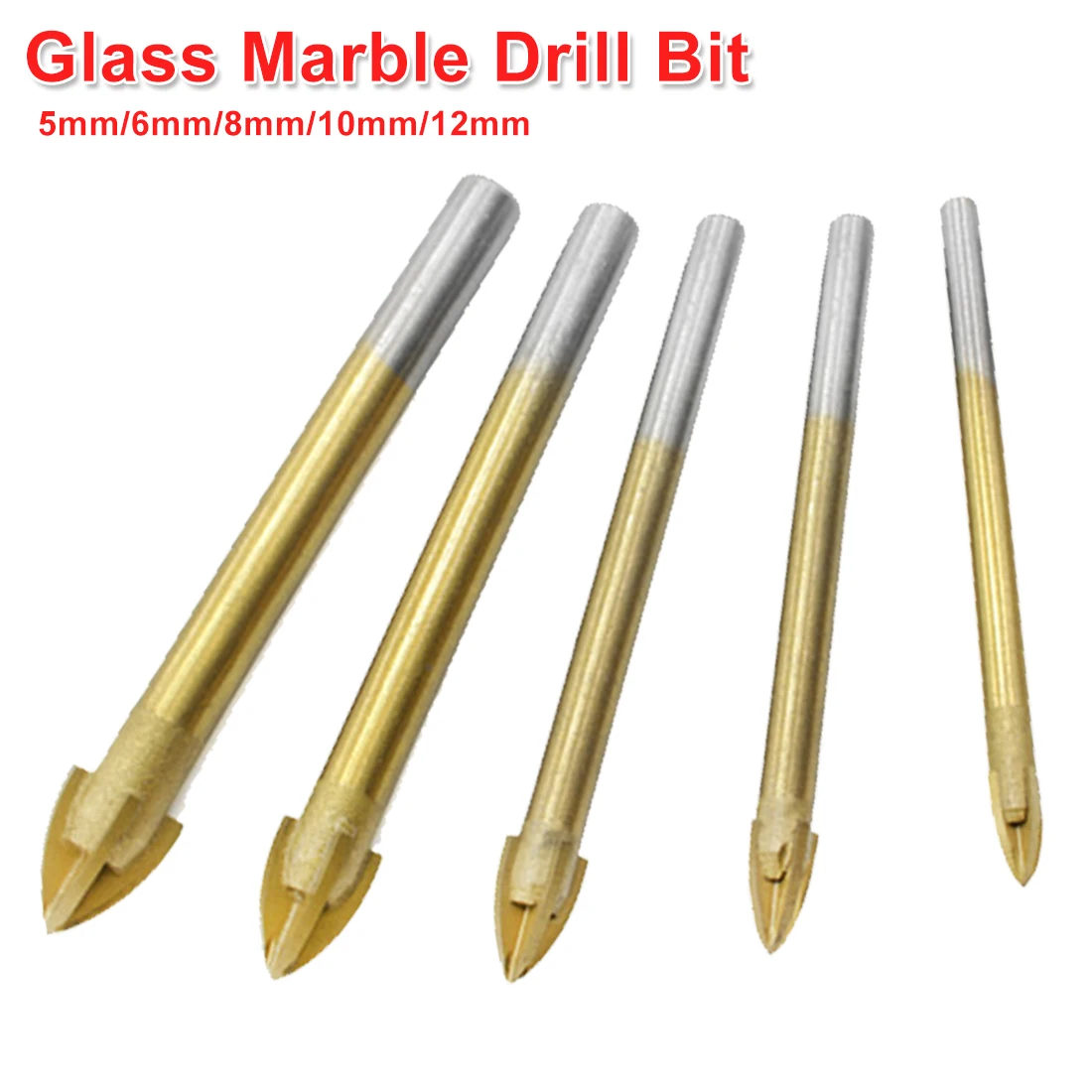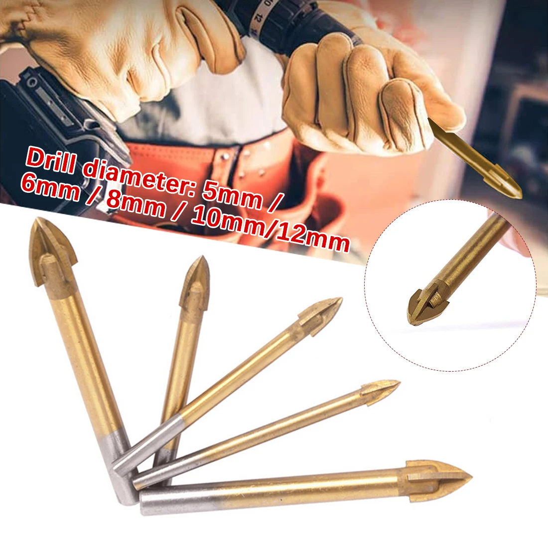 Сверла с титановым покрытием и шестигранным хвостовиком для керамической плитки, мрамора, зеркала, 4 режущих кромки, сверло с перекрестной головкой