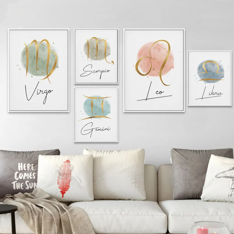 Постер с созвездиями, астрономическими звездами, для домашнего декора, Живопись акварелью, астрологический знак, картины для украшения детской гостиной