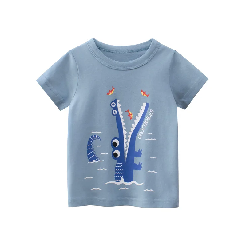 Хлопковая футболка с принтом в виде животных, акулы, динозавра