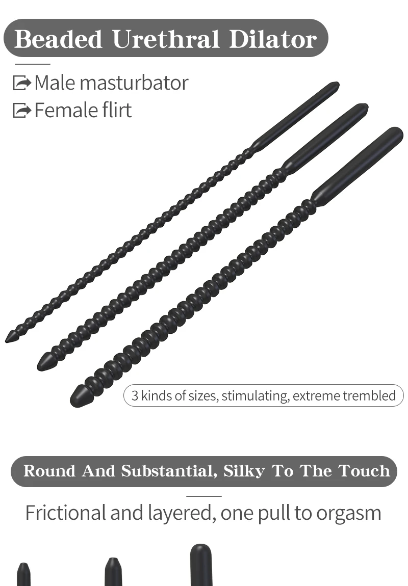 Материал: силикон Длина: 24 см Диаметр: 6 мм/8 мм/10 мм Особенность: дизайн нитей бусин, увеличение удовольствия от стимуляции; Функция: уретральный оргазм стимулирует мастурбацию, пары флиртуют и т. д. Комплектация: Сдержанпосылка, без половой информации.