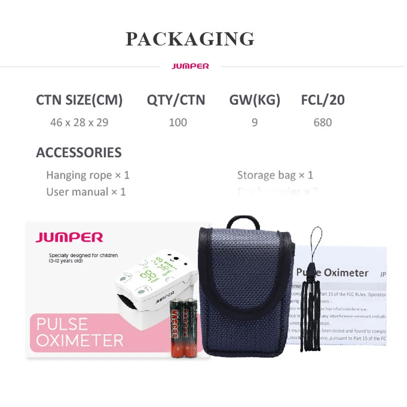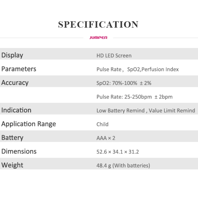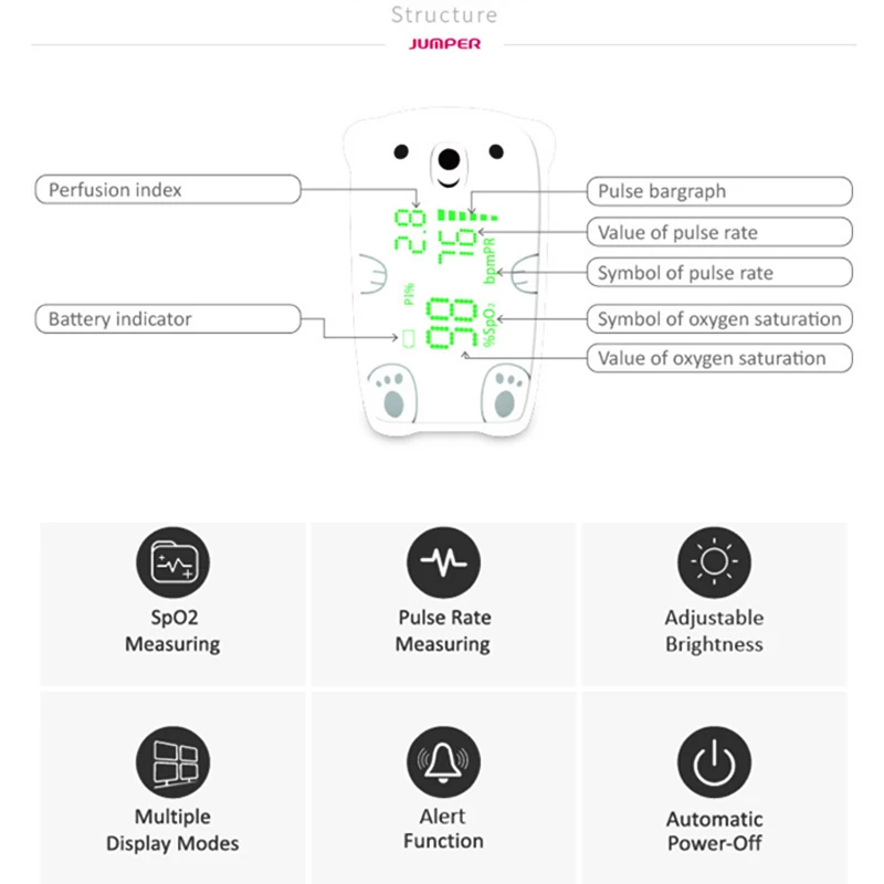 Jumper Baby Пальчиковый Пульсоксиметр для детей Oximetro De Dedo SpO2 PR HD светодиодный детский Пальчиковый пульсиоксиметр От 3 до 12 лет