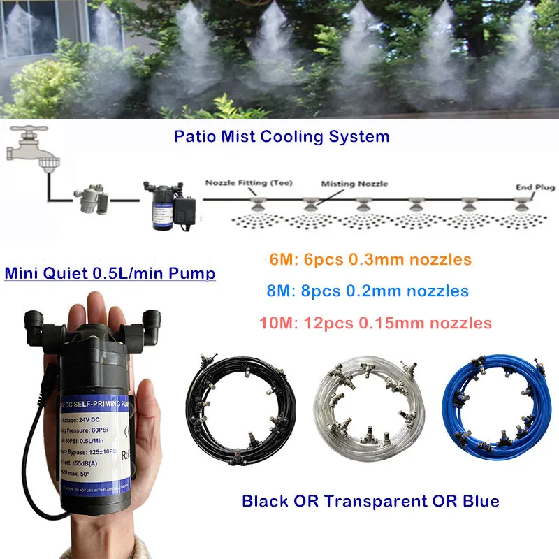 Электрический распылитель S407, 24 В, тихий водяной насос 6-10 м, наборы для полива, 6 мм, противотуманные насадки, система охлаждения тумана для сада, патио