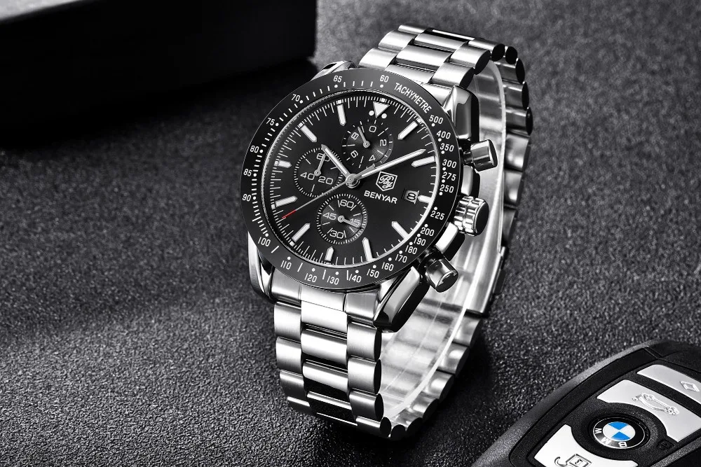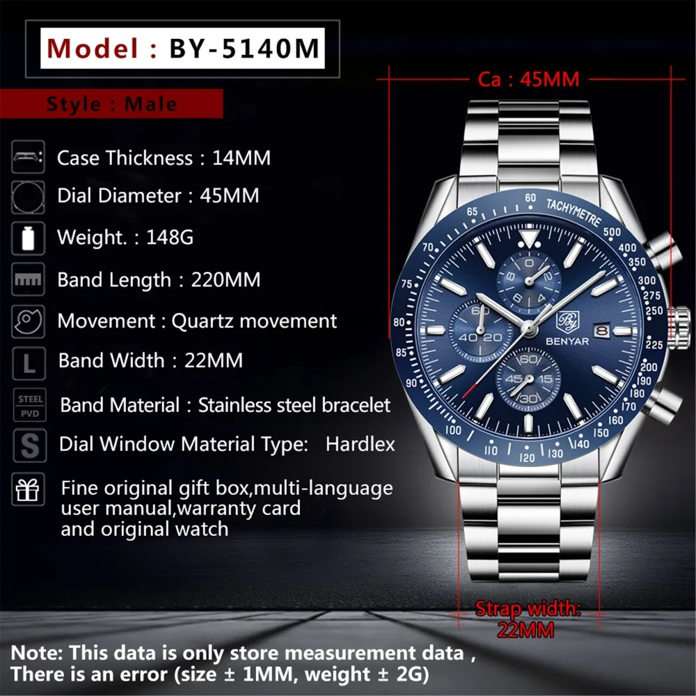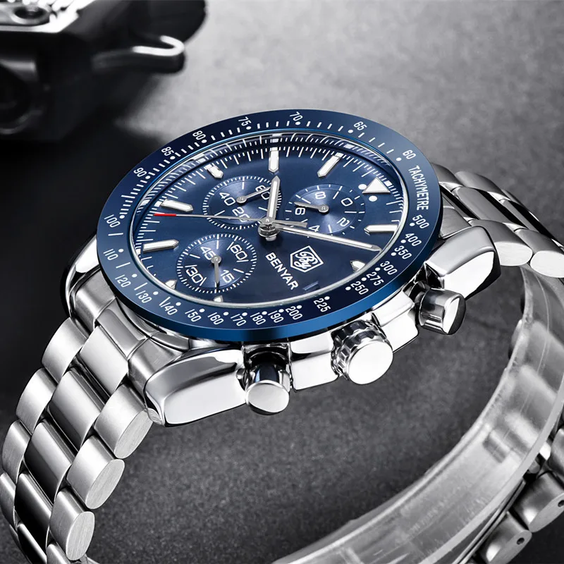 Часы Benyar Мужские автоматические механические, модные роскошные деловые брендовые многофункциональные водонепроницаемые с хронографом, 2021