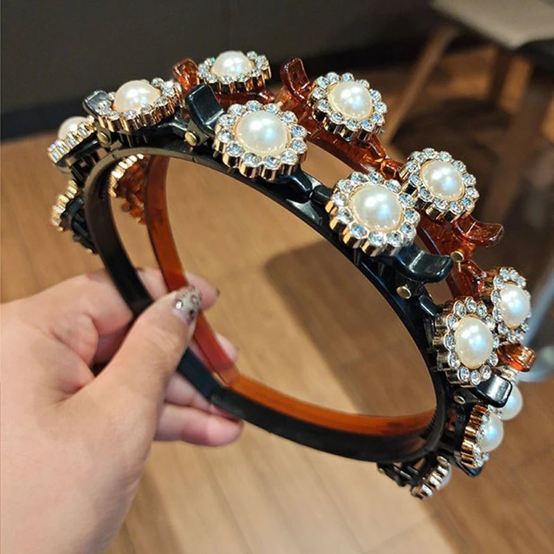 Нескользящие повязки для волос принцессы Жемчужная Повязка на голову с зажимами женские Стразы с кристаллами шпильки для волос аксессуары для волос