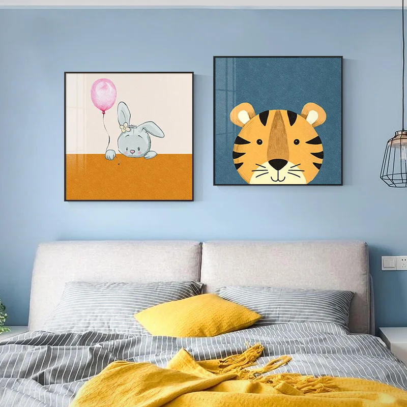 Мультяшные животные кролик Тигр Медведь воздушный шар цветок редис Картина на холсте Печать на стене постер для гостиной украшение дома