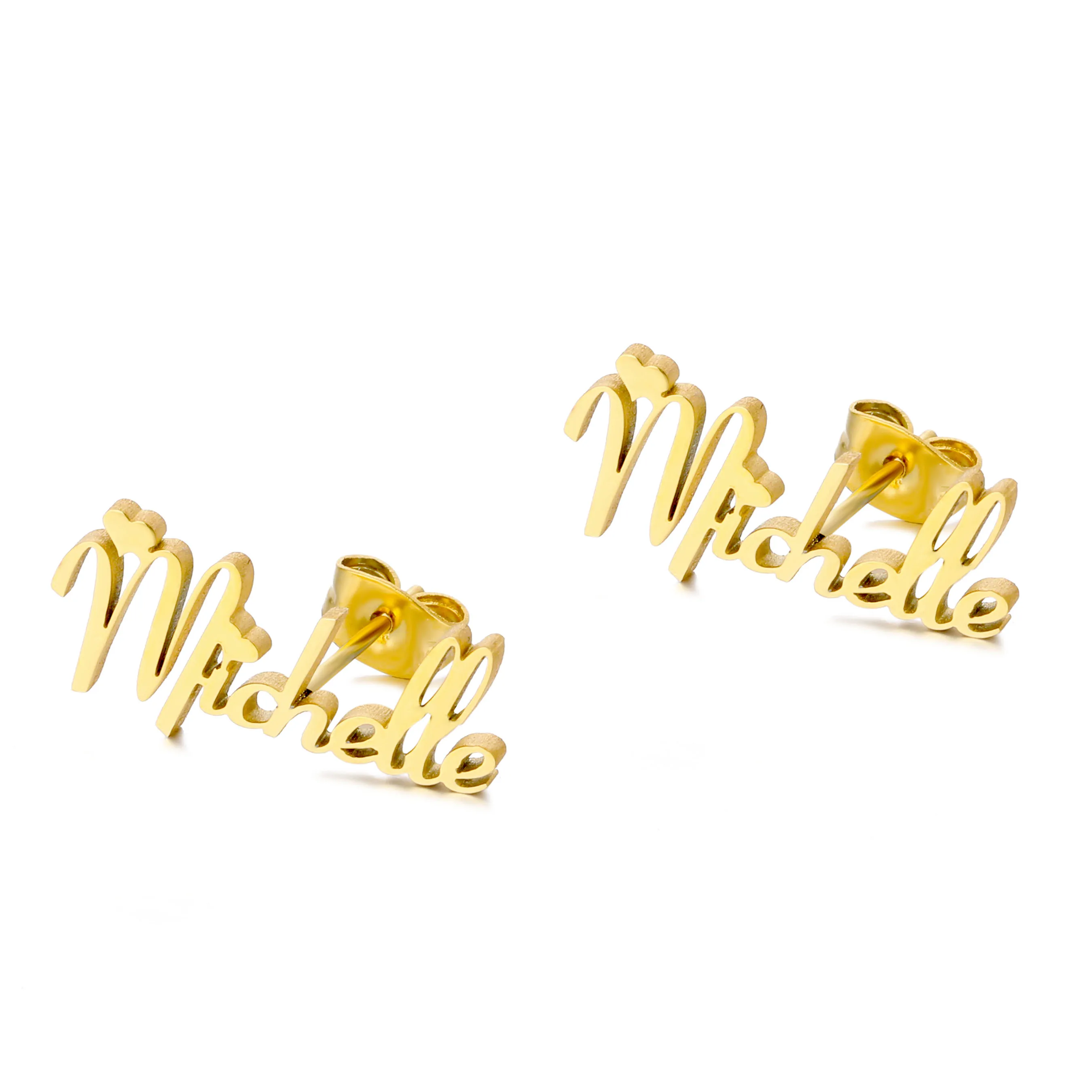 Серьги-гвоздики женские из нержавеющей стали, с именем на заказ