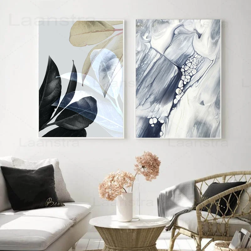 Картина на холсте с изображением листьев растений, Декор для дома в скандинавском стиле, Настенная картина для гостиной, абстрактные плакаты и принты