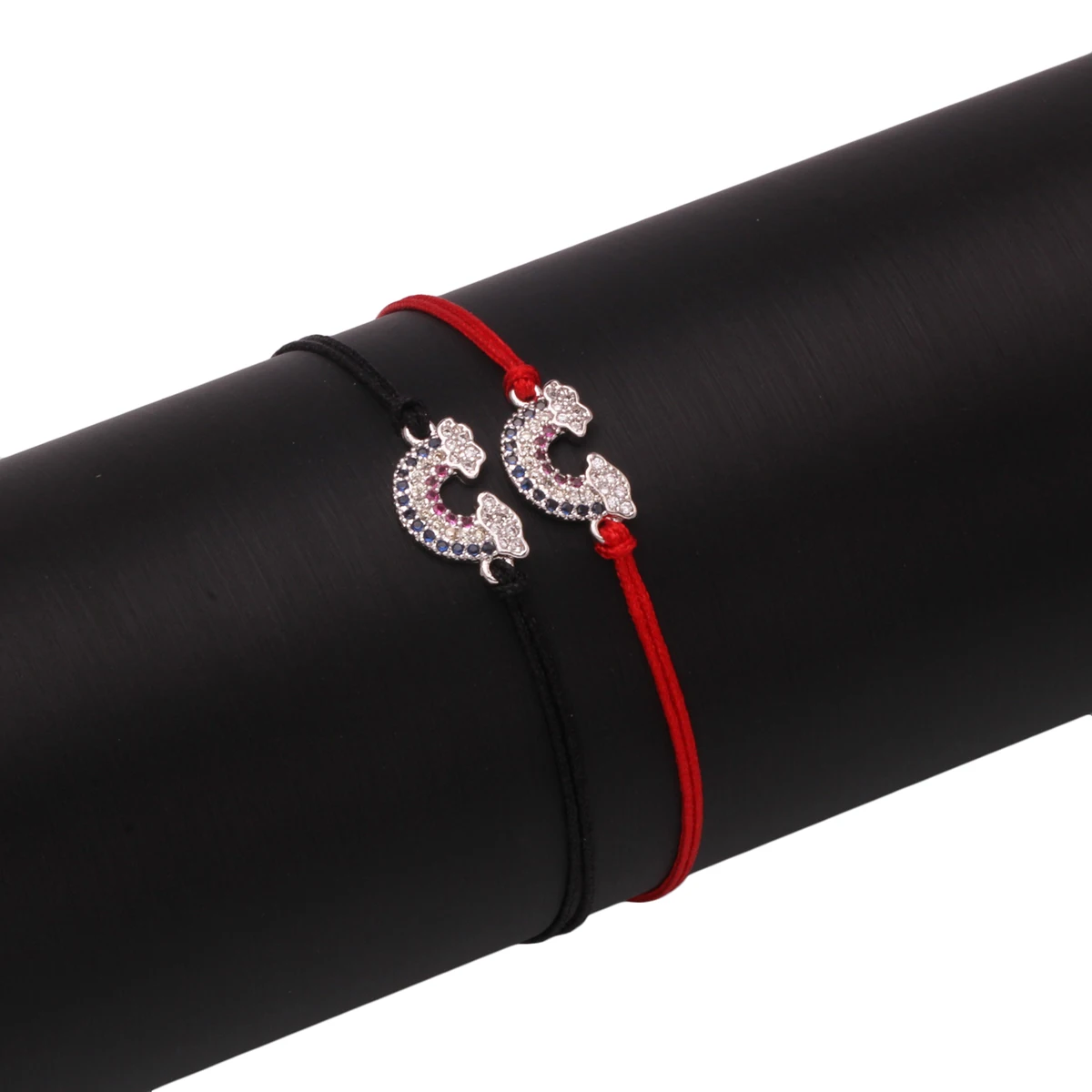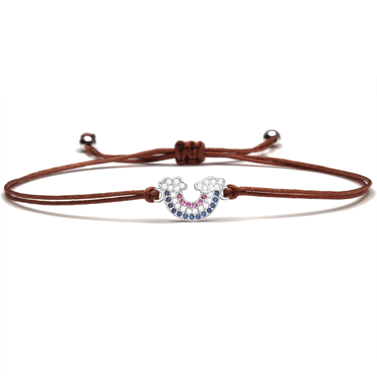 Сине-белые кубического циркония камни небольшой медной Радужный Шарм браслет для женщин радостные CZ латунь красный шнур ювелирные изделия ручной работы подарок