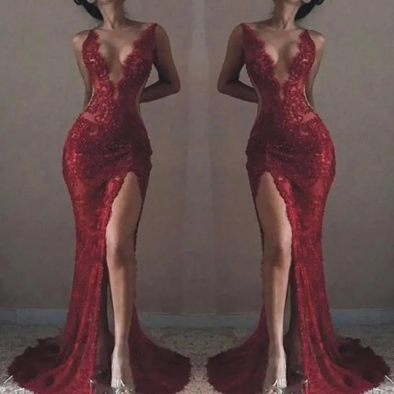 Сексуальные кружевные вечерние платья-русалки с V-образным вырезом,...