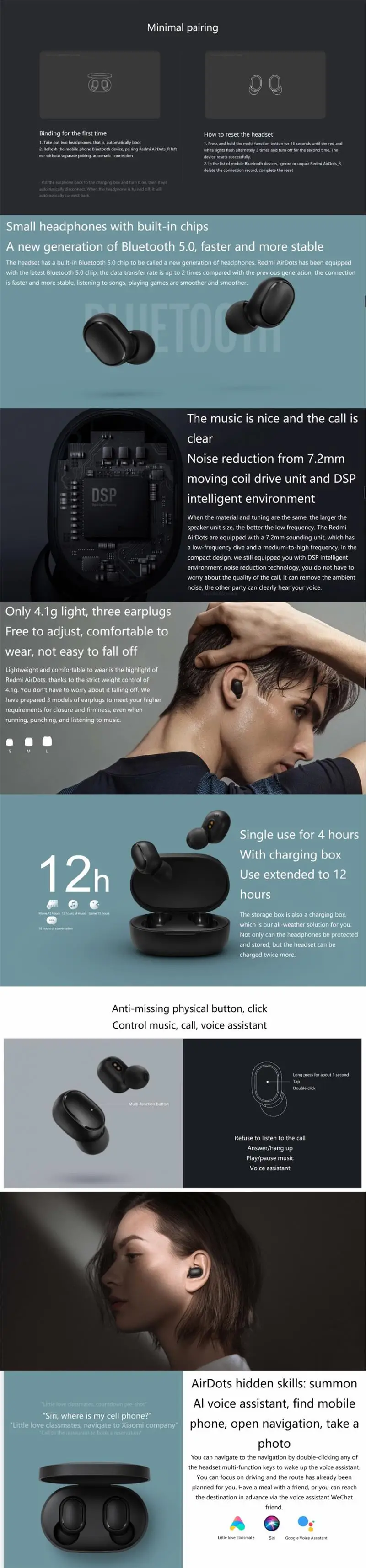 Nota: 1. cn versano: vermelho mi airdots 2; Versao global: mi verdadeiro fones de ouvido sem fio bаsico 2. redmi mi airdots 2 não tem cabo de carregamento como pado rão. A caixa e cabo usb em sem marca, por favor atençao. Redmi AirDots 2 Verdadeiro fone de ouvido sem fio bluetooth, bluetooth 5,0, conectado автоматически Conexão rápida в conexão АКПП dos segundos, возможно, ser usada com fones de ouvido 1 и 2 переключатель, американский стандарт ---- (Ново) mudança sem emenda do modo de um ou dois ouvidos. Bluetooth 5,0 Uma nova geração de tecnologia bluetooth para conexыes mais rаpidas e mais estabuveis 4,1g luz confortado de usar, livre para ajustar, não é fаcil de cair Vida util longa da bateria 12h Com a caixa de carregamento, escova 6 filmes Controle de voz Chamar assistente de voz, telefone móvel de controle de voz