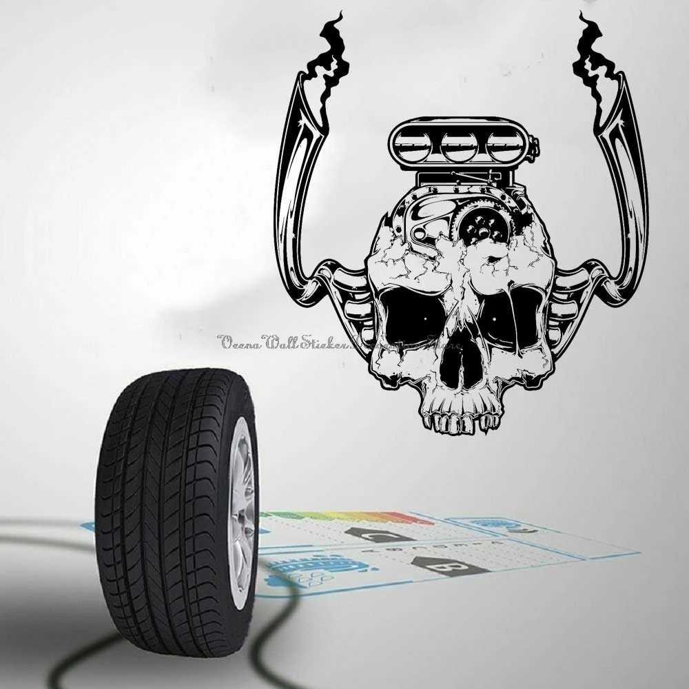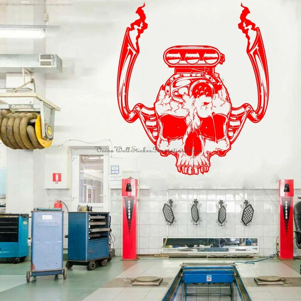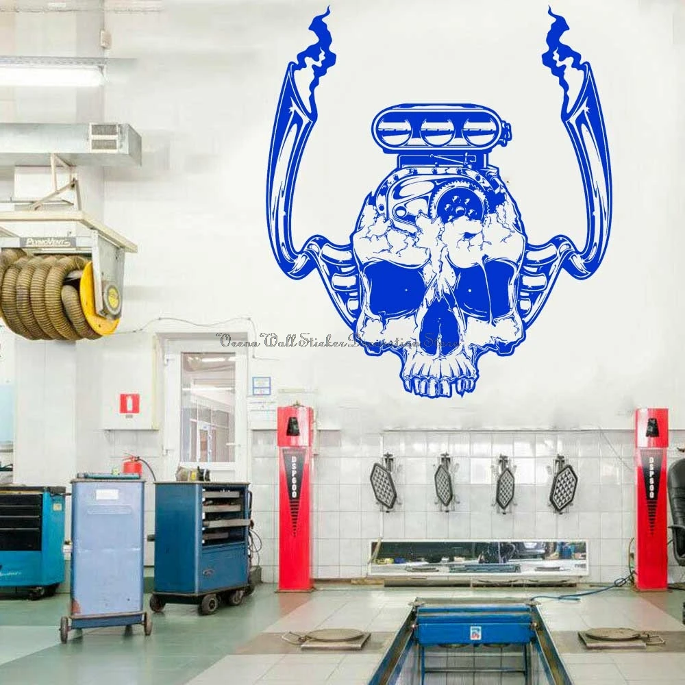 Автомобильные виниловые наклейки на стену, автомобильный мотор, двигатель, Череп, гараж, авторемонт, магазин продаж автомобилей, аренда, автомобильный магазин, арт-деко, наклейка, обои F