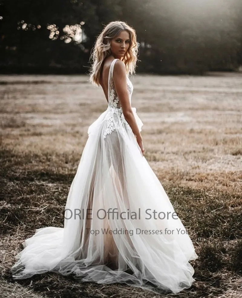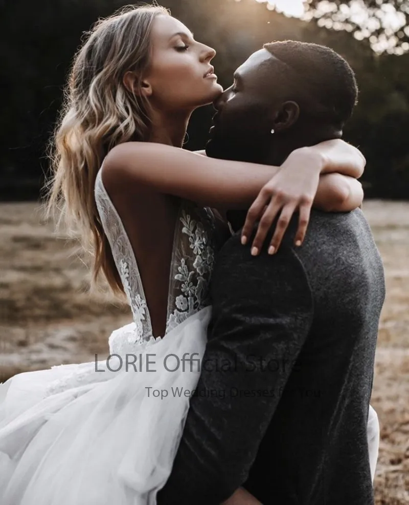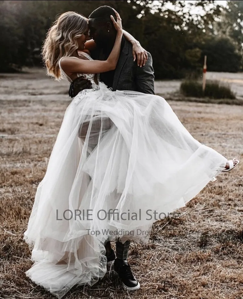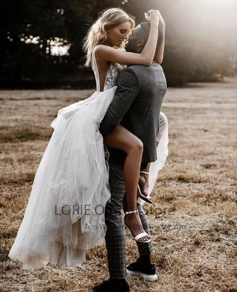 Пляжное свадебное платье LORIE в стиле бохо с V-образным вырезом и аппликацией кружевное Тюлевое простое свадебное платье богемное свадебное платье 2021 свадебные платья