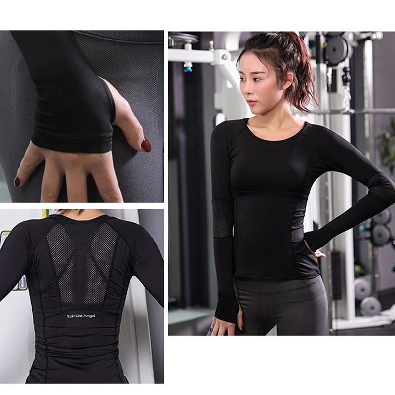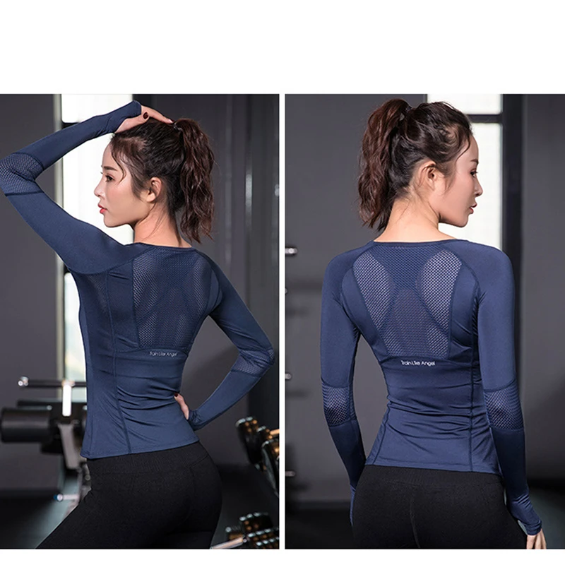 Новинка 2020, спортивные топы синего, черного и розового цвета, женская спортивная футболка для фитнеса, Женский Топ с длинным рукавом, сетчатые Женские топы для спортзала, спортивная одежда для женщин
