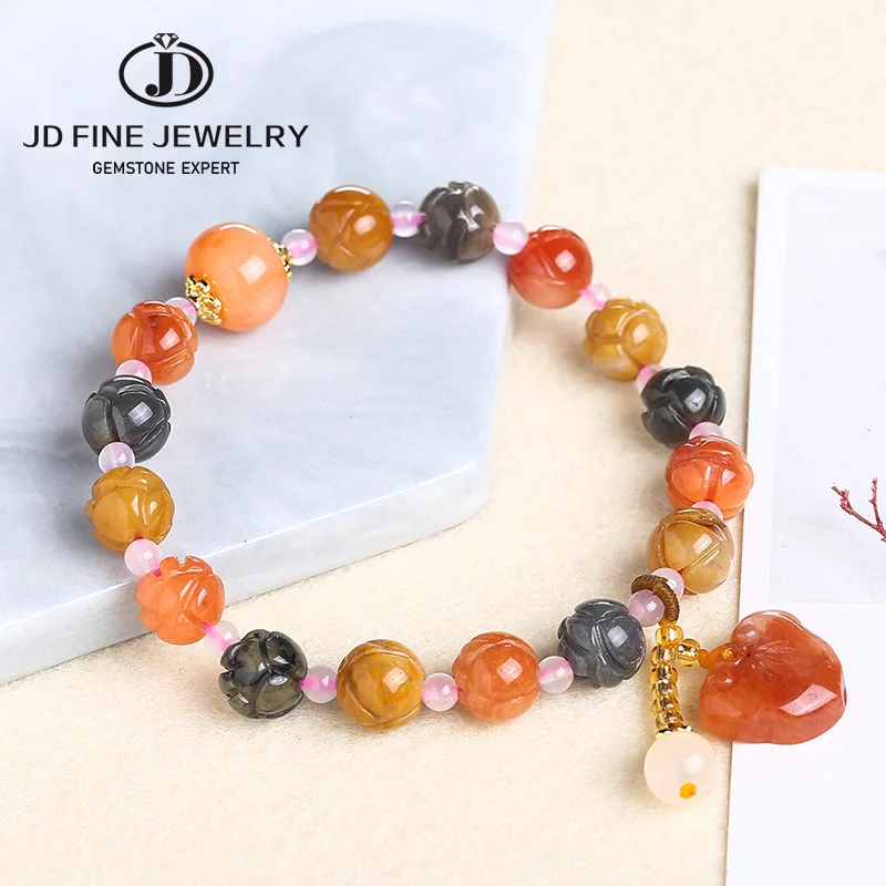 JD натуральный Цвет Нефритовый Цветокбусины в форме ягодки браслет Модный шарм аксессуары DIY ручной резной Лаки амулет Подарки для женщин ювелирные изделия