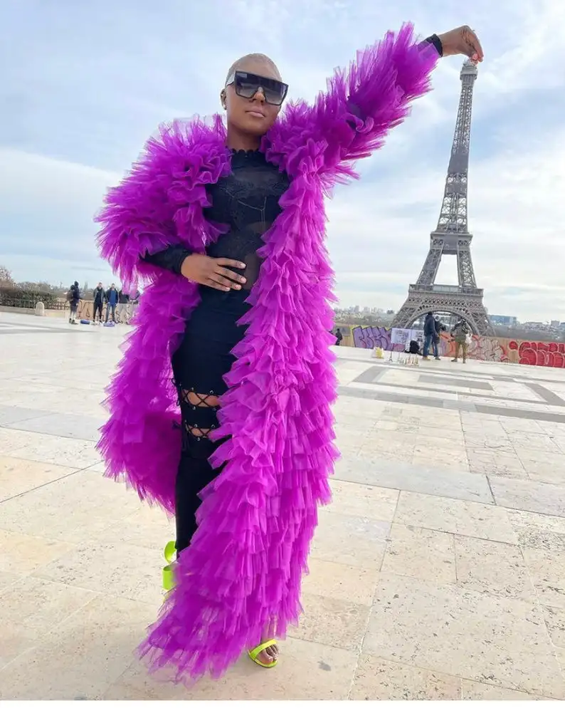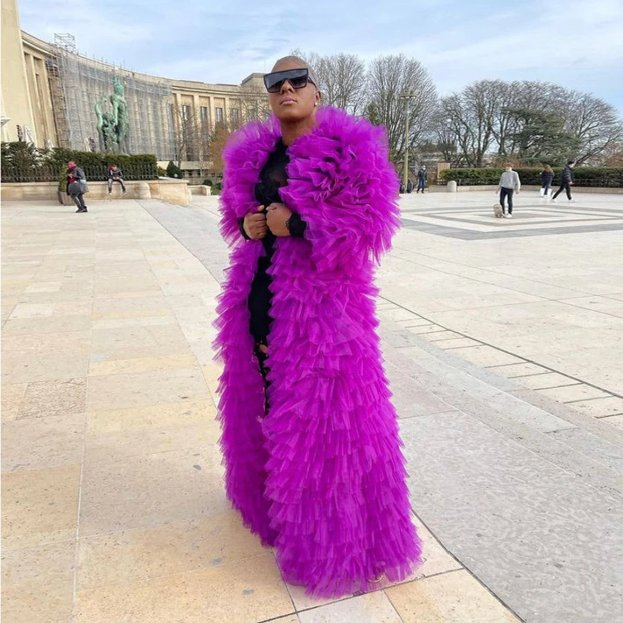 Женский тюлевый жакет, в пол, с многослойными оборками, на заказ, для беременных, для фотосессии, размера плюс