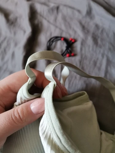 Бюстгалтер приятный на ощупь. Для большой груди вряд ли подойдет, т.к внутренняя поддерживающая подложка достатрчна маленькая. Продавец положил в подарок резинку для волос