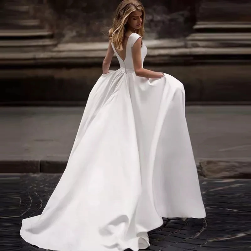 Атласное свадебное платье, свадебное платье а-силуэт, свадебное плать
