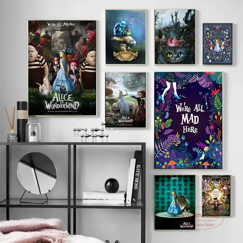 Алиса в стране чудес фильм, рисунок на холсте Плакаты и печать фото...
