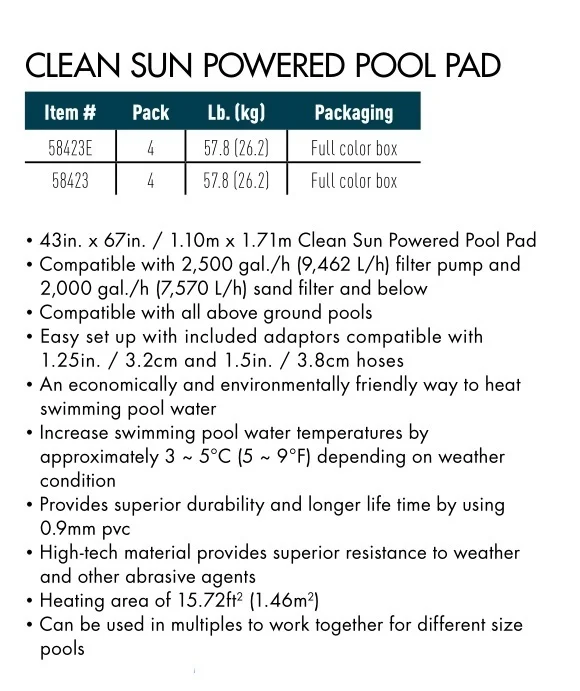 58423 год, Bestway 110x171 см Солнечный нагревательный элемент для бассейна 43x67in, Солнечный нагреватель для ABG бассейна, совместимый с фильтром, увеличивающим 3 5 градусов