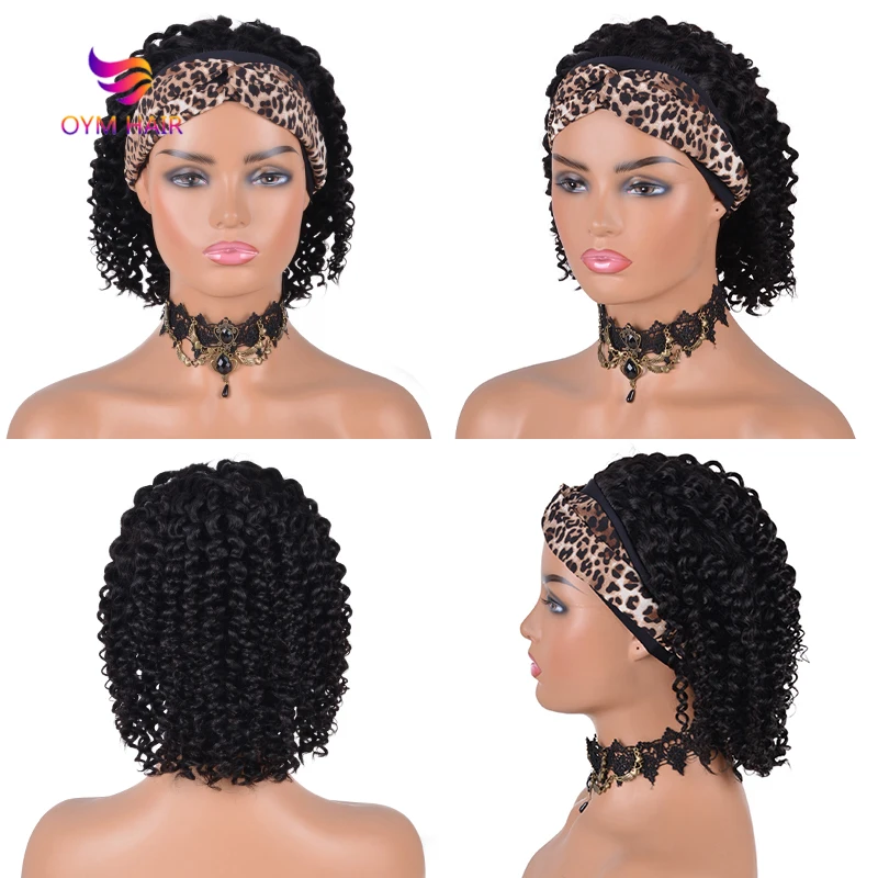 Парик с головной повязкой, африканские Курчавые Кудрявые парики для чернокожих Для женщин короткий кудрявый боб полный манекен для шарфа парика 180% человеческие волосы Джерри Керл повязка на голову парик