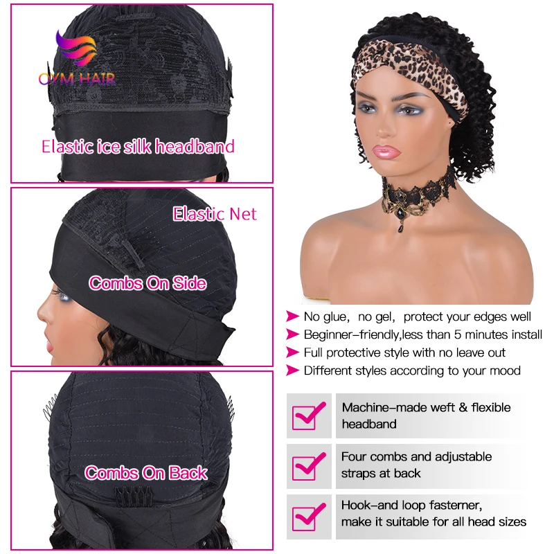 Wigs Type:Full Machine Made Wig,Wigs With Headband