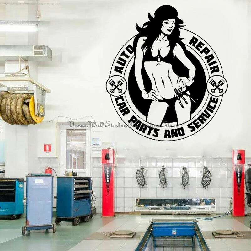 Виниловые наклейки на стену для ремонта автомобилей, Эротичная девушка, магазин для ремонта автомобилей, прокатный автомагазин, декоративные наклейки F10