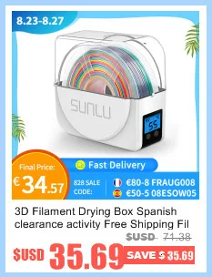 Материал нити: PLAНити Диаметр: 1,75 ± 0,02 ммДлина: 1,75 мм (1 кг) = 330 мСкорость печати: 50-100 мм/сек.Рекомендуемая температура печати: 200-230 ℃Температура нижней пластины: 60-80 ℃Вес нетто: 1 кг/рулоны