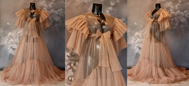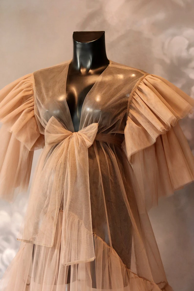 Прозрачный тюлевый халат телесного цвета, платье для фотосессии или вечеринки в честь рождения малыша, прозрачный, женский халат для беременных
