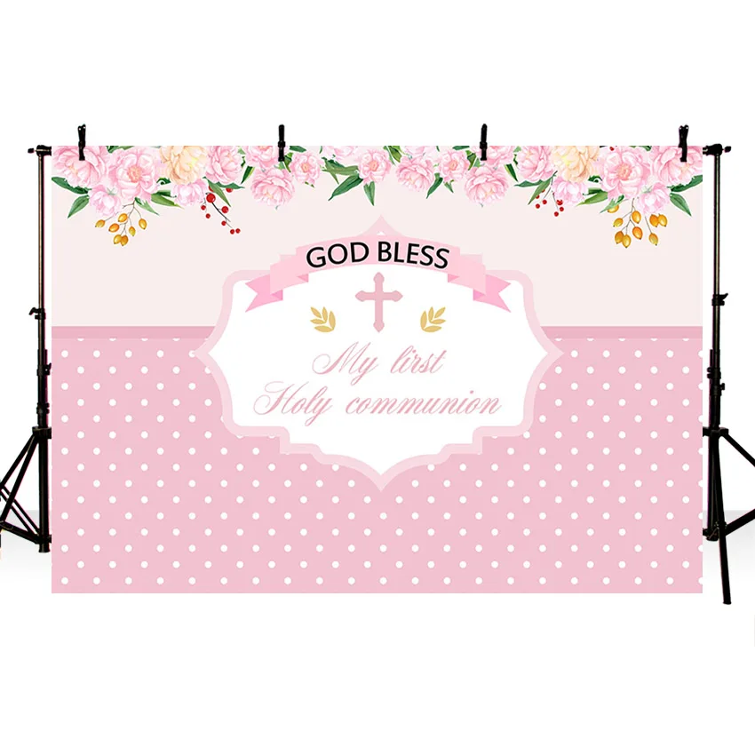 Avezano первый Святой Причастие пользовательский фон Бог благословит Розовый декор вечерние фотография Фон баннер фотосессия фотозона