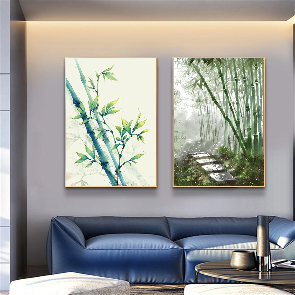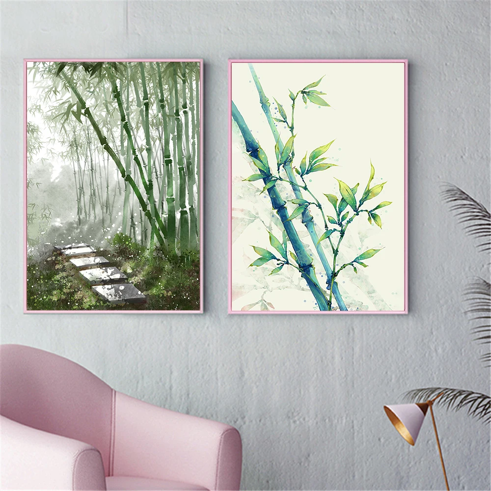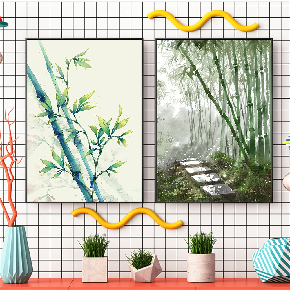 Постер на стену с зелеными растениями, бамбуковые холсты, художественные принты для дома, бескаркасные настенные картины для интерьера