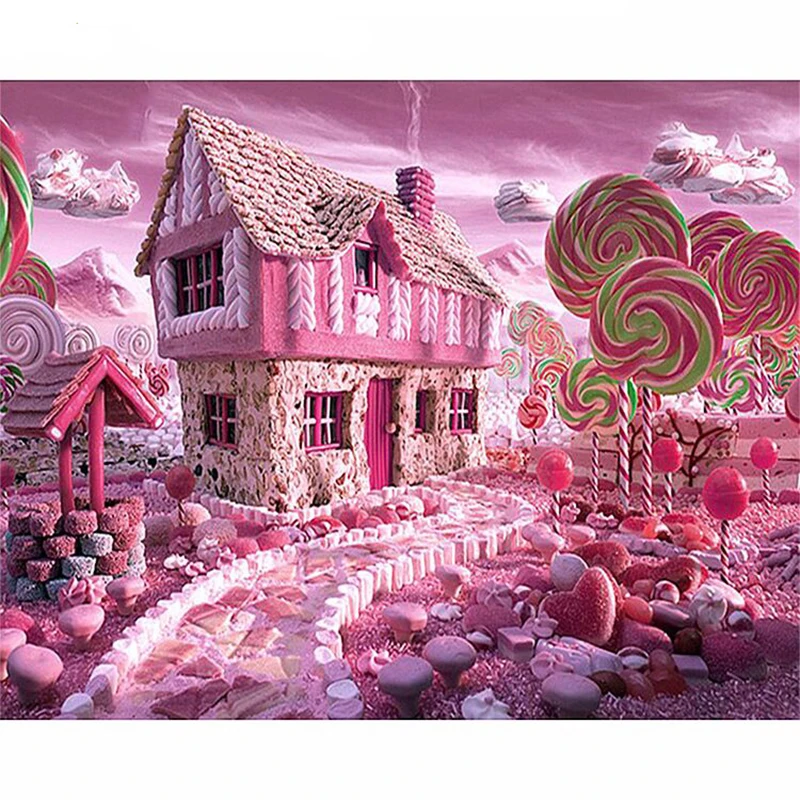 Полная дрель 5D DIY Алмазная картина розовый дом мечты пейзаж мозаика Вышивка крестом стразы украшение подарок вышивка фото
