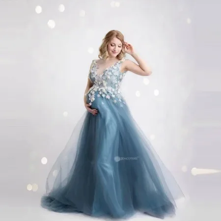 Тюлевые Платья с цветочным рисунком, трапециевидные платья для беременных, с V-образным вырезом, ручной работы, с цветочными аппликациями, на заказ, фотосессия для беременных