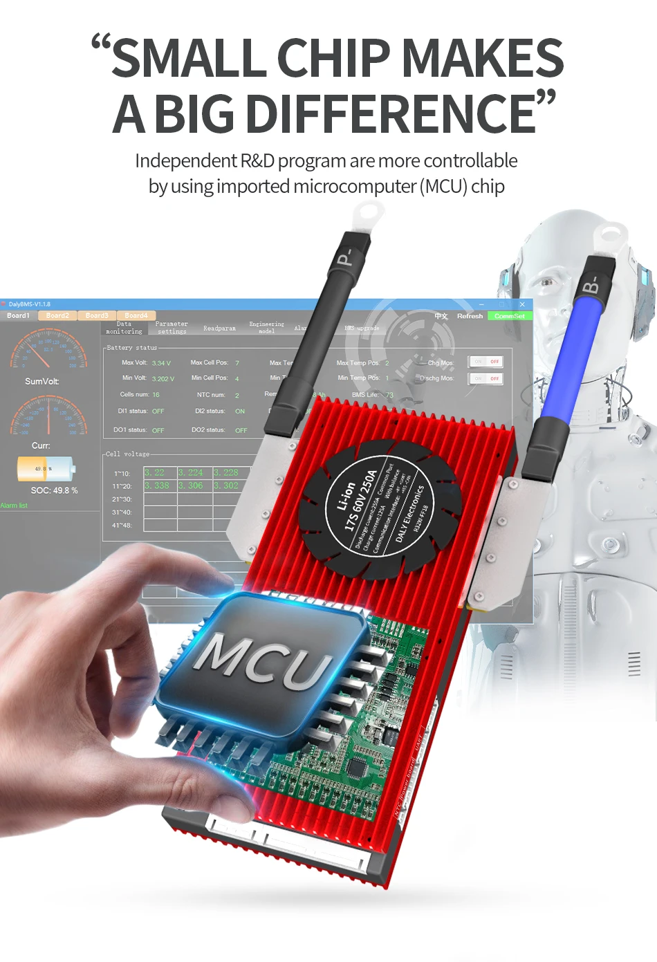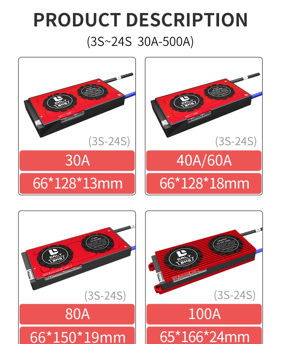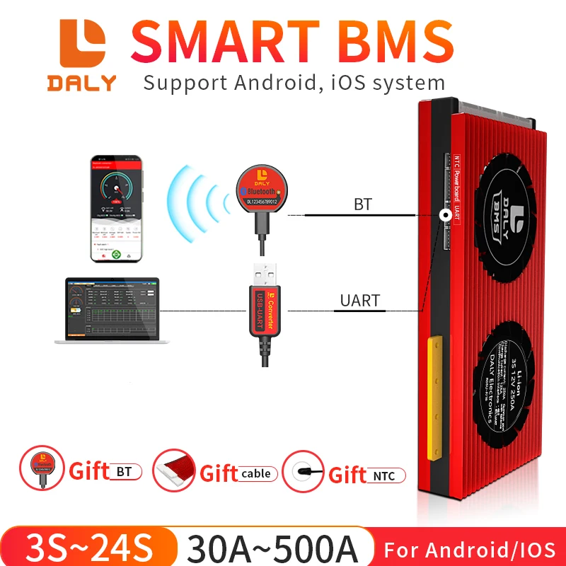 Daly smart bms LiFePO4 12V 24V 36V 48V 4S 3s 7s 8s 10s 12s 13s 14s 16s 20s 24s LTO Li-Ion 30A 100A 200A 250A 300A 500A bluetooth