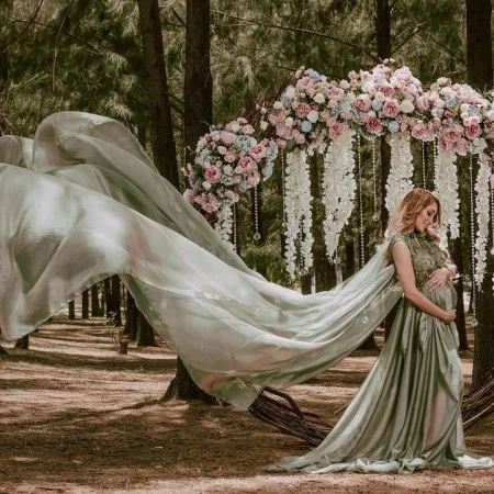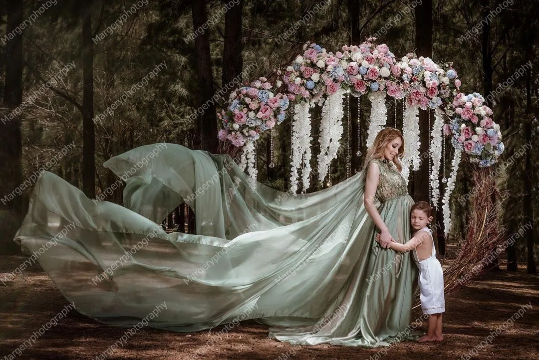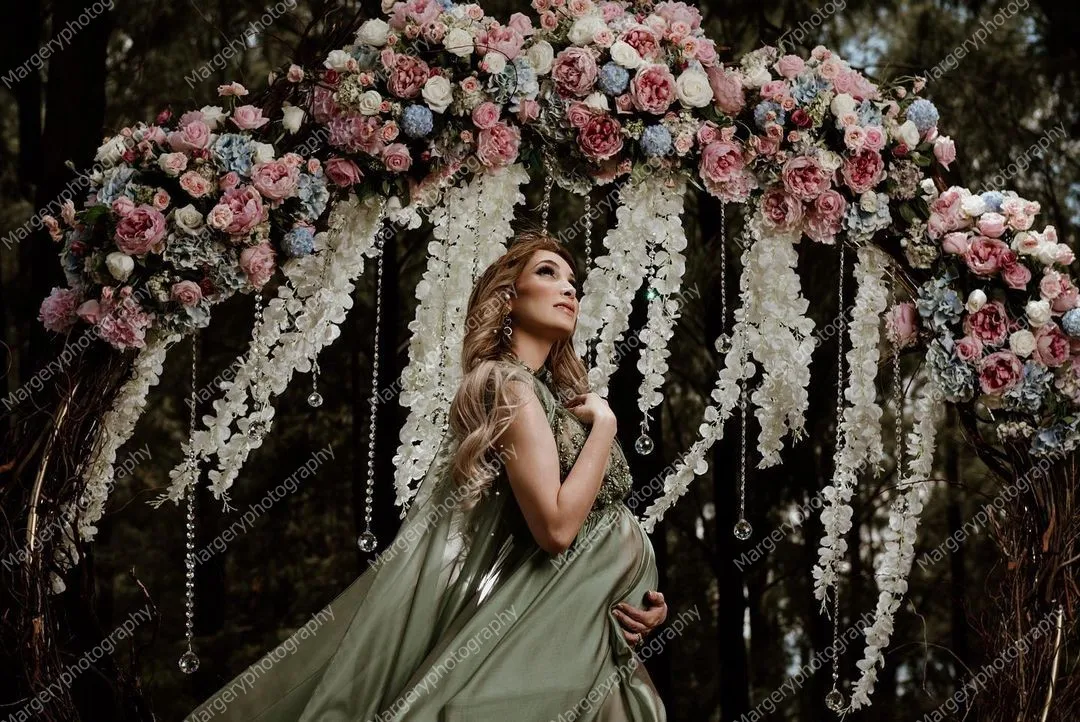 Роскошный цветок Беременность платья для фотосессии одежда с длинны...