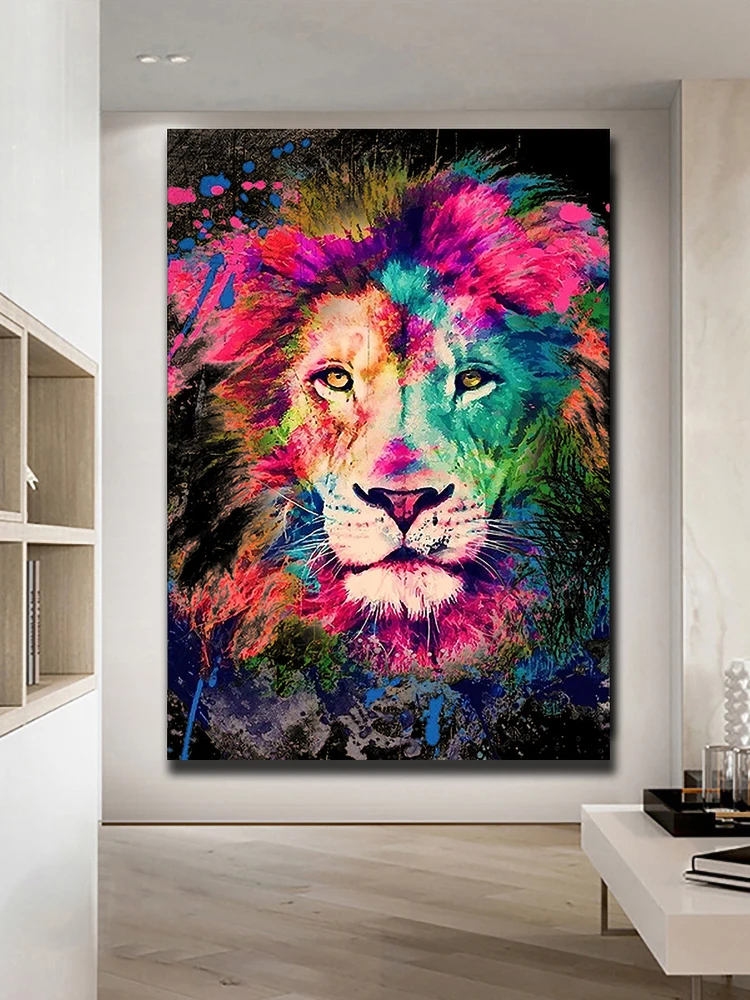 Абстрактная живопись красочный Лев современное животное картина настенное искусство для художественного творчества холст постер украшение дома без рамки