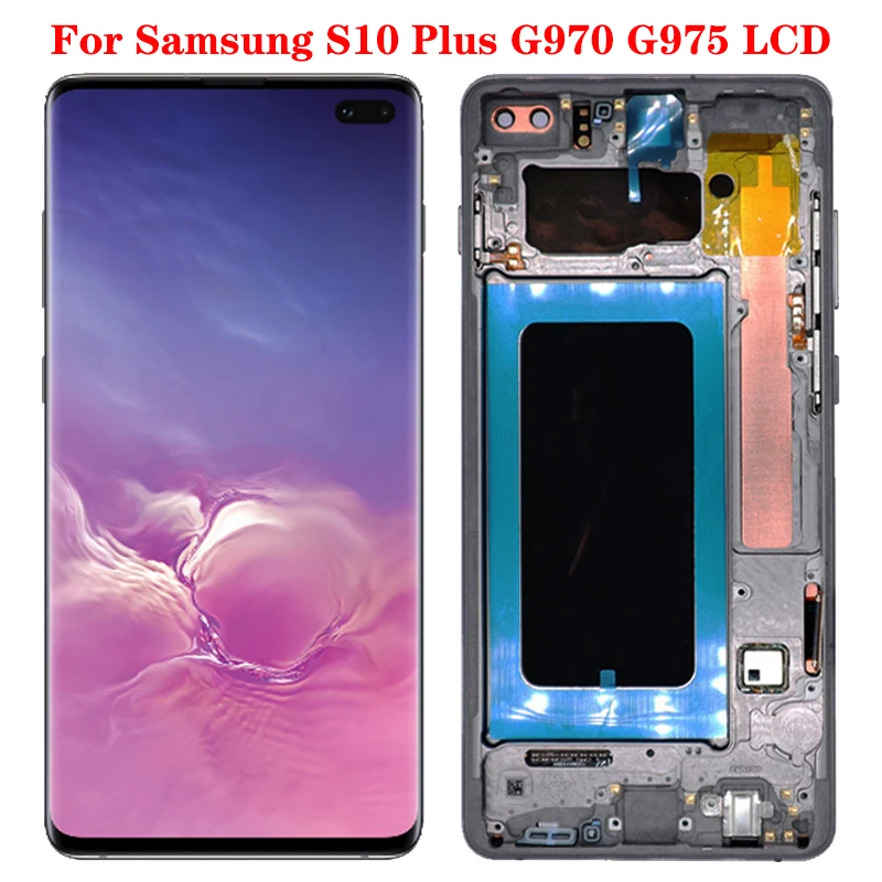 Дисплей с тачскрином SUPER AMOLED G975F для Samsung S10 Plus, ЖК-дисплей с рамкой в сборе для Galaxy S10 Plus, G975F, G9750, ЖК-дисплей