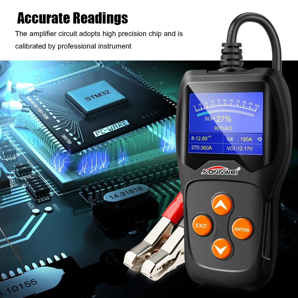 Тестер Аккумуляторов Авто KONNWEI KW600, 12 В от 100 до 2000CCA 12 Вольт, аккумуляторные инструменты для авто, быстрый запуск, диагностический