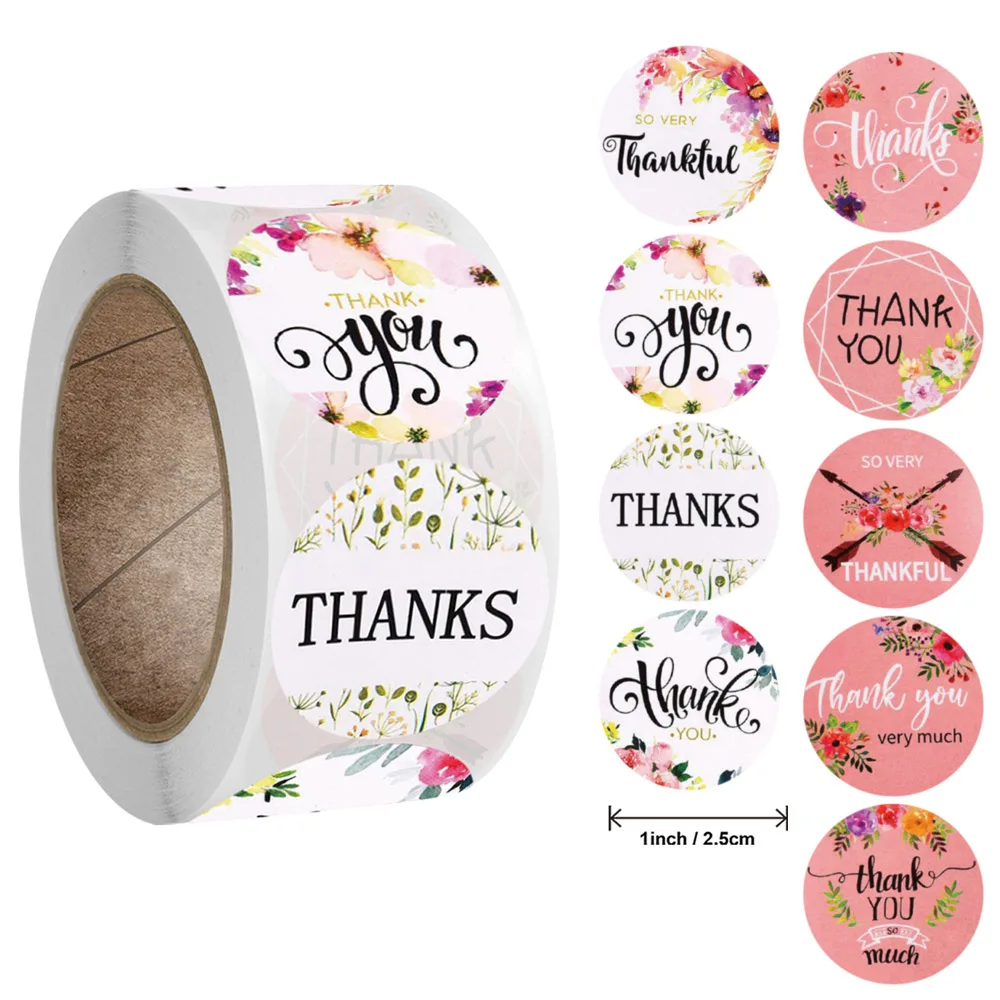 100-500 шт 6 видов конструкций цветочный наклейка спасибо этикетки для печати Рождественский подарок украшения Стикеры для упаковки стикер для канцелярских товаров