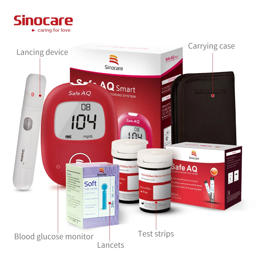 Глюкометр Sinocare AQ с тест-полосками и иглами для измерения уровня сахара в крови