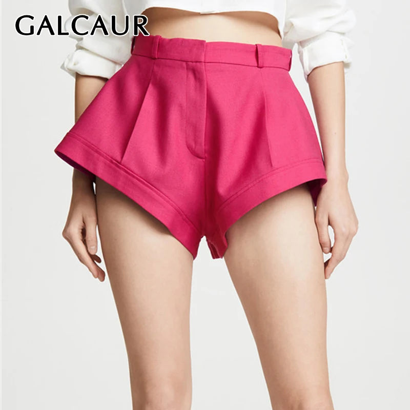 Шорты GALCAUR женские с завышенной талией, однотонные свободные короткие штаны на молнии, модная одежда больших размеров, лето 2021