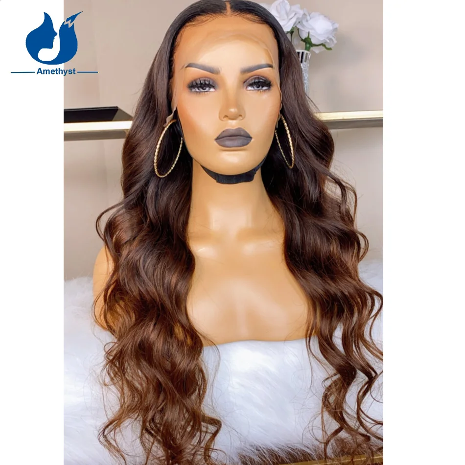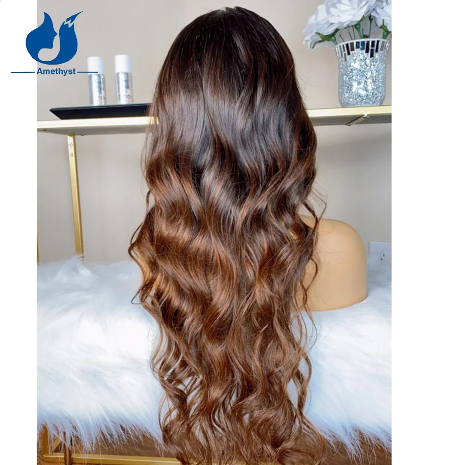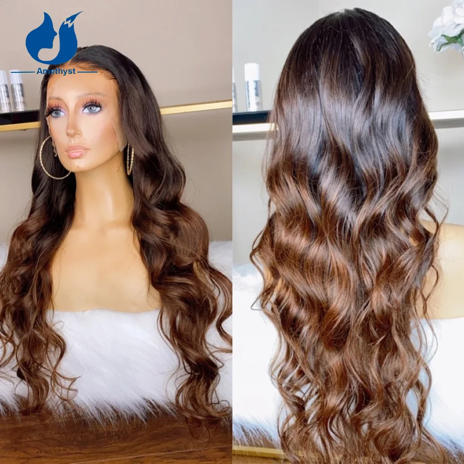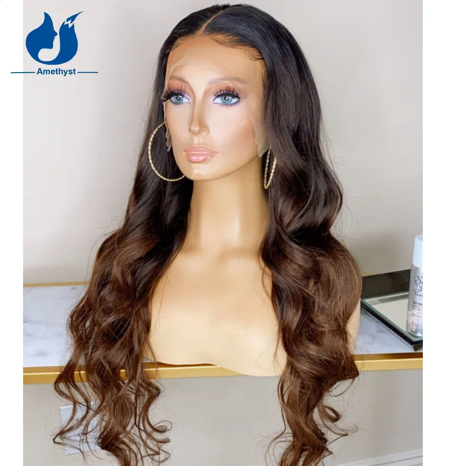 Парики из натуральных волос Аметист 13x4 на шнурке, бразильские волосы Омбре, натуральные волнистые человеческие волосы парики с детскими волосами для чернокожих женщин