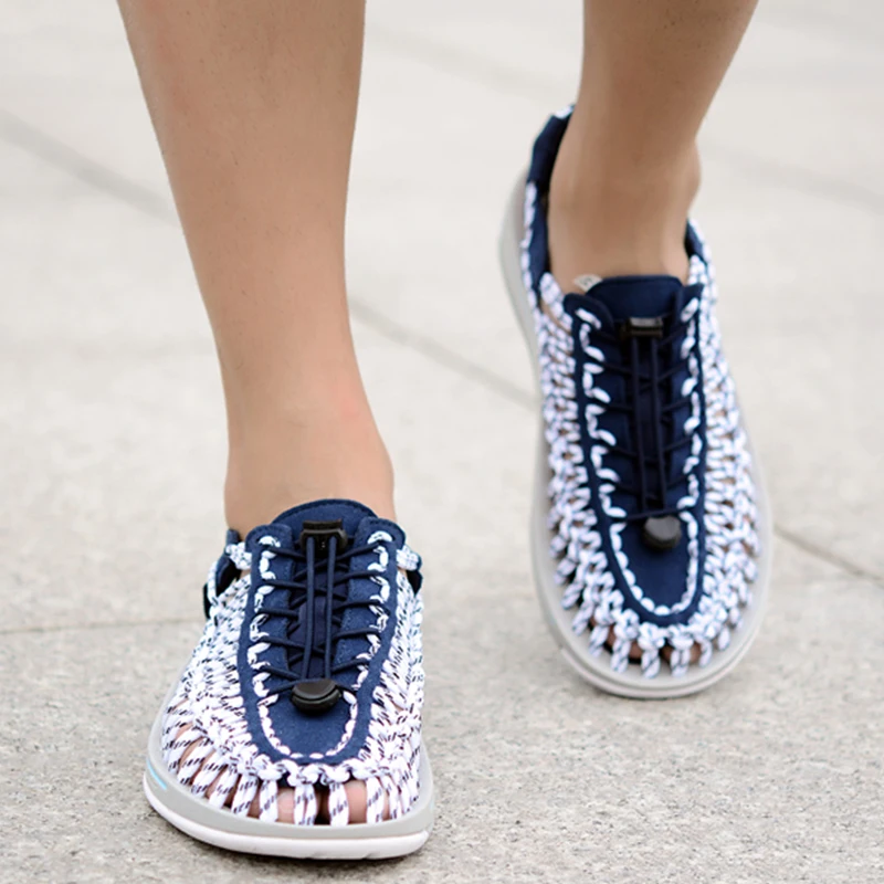 Мужские сандалии, Новинка лета 2021, дышащие мягкие сандалии на плоской подошве, уличные пляжные слипоны, модные плетеные сандалии для отдыха, мужская повседневная обувь