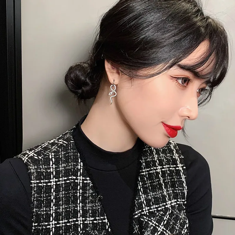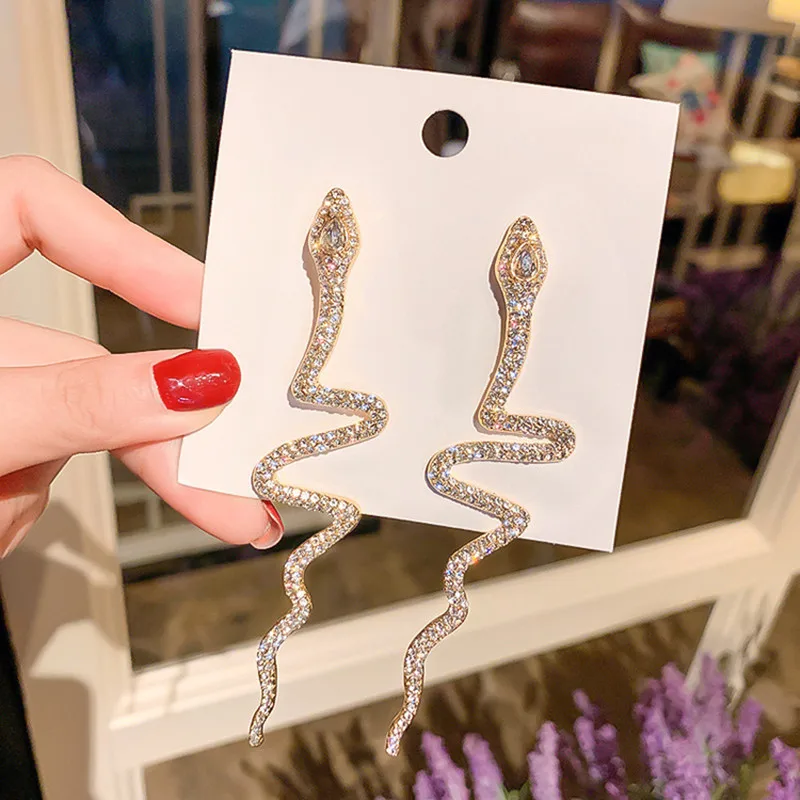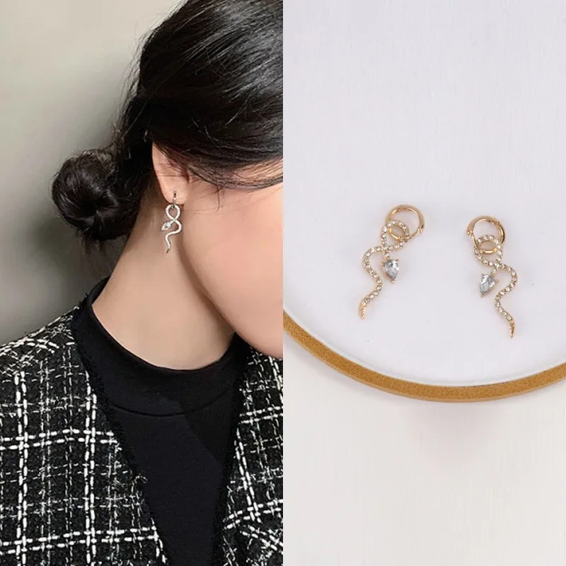 Женские серьги-гвоздики в стиле панк, милые серьги в виде змеи в Корейском стиле, ювелирные украшения для женщин, стразы, 2021