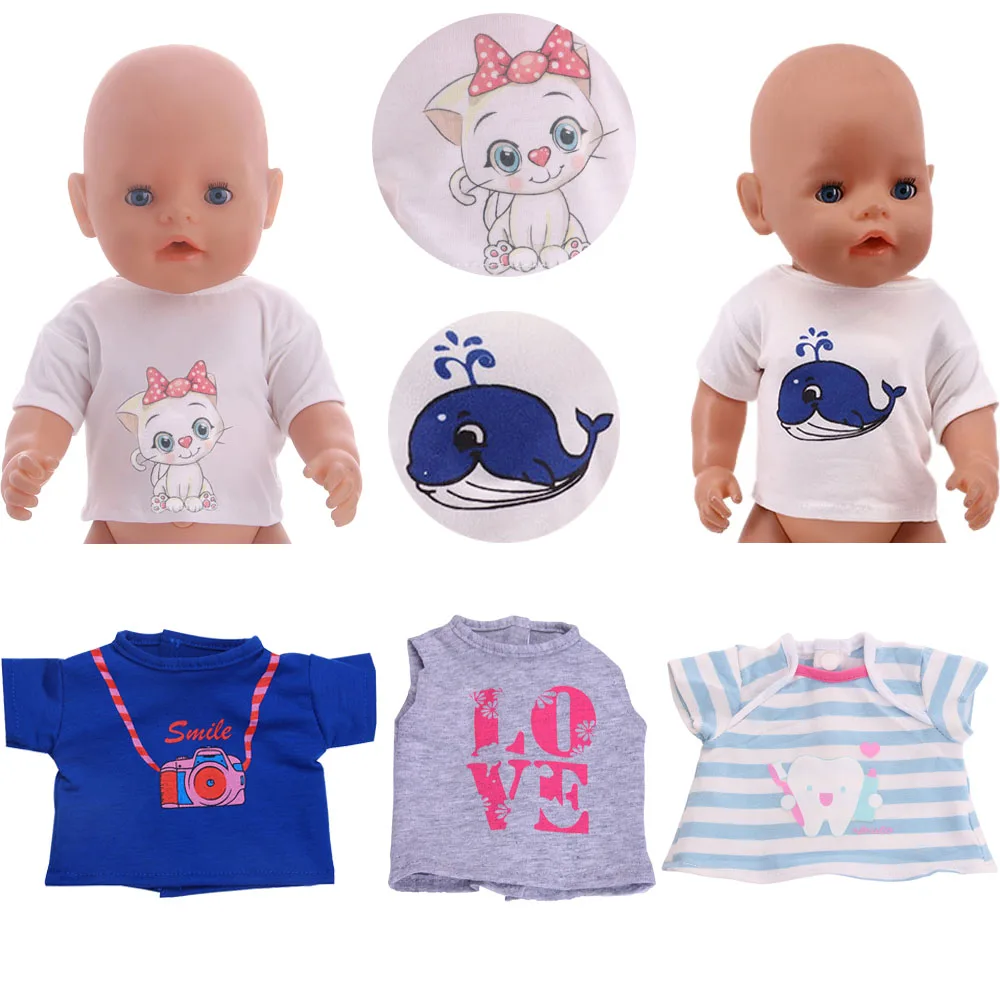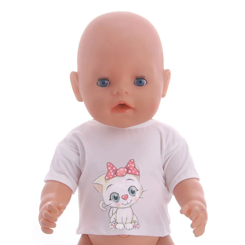 Кукольная футболка с мультяшным рисунком кошки для ребенка 43 см и 18-дюймовой девочки американская, одежда нашего поколения детские товары, игрушка для детей
