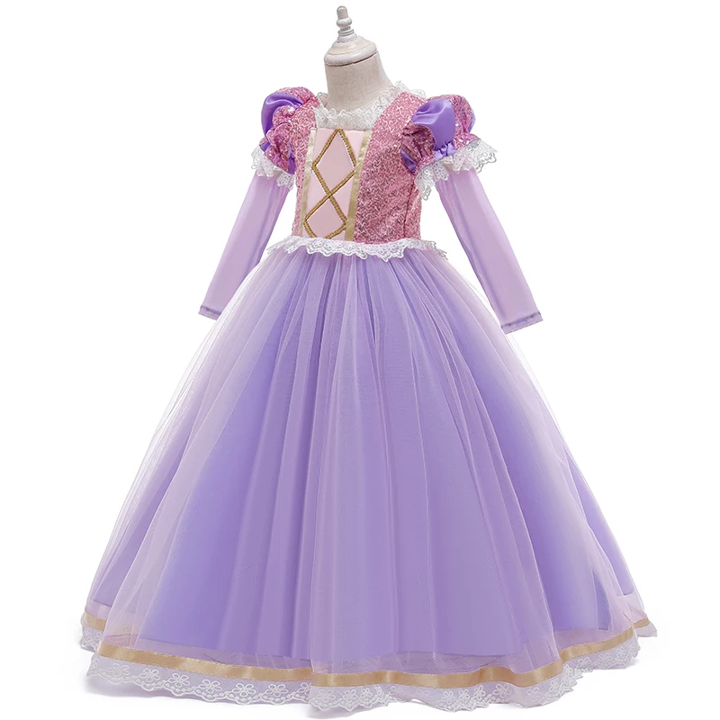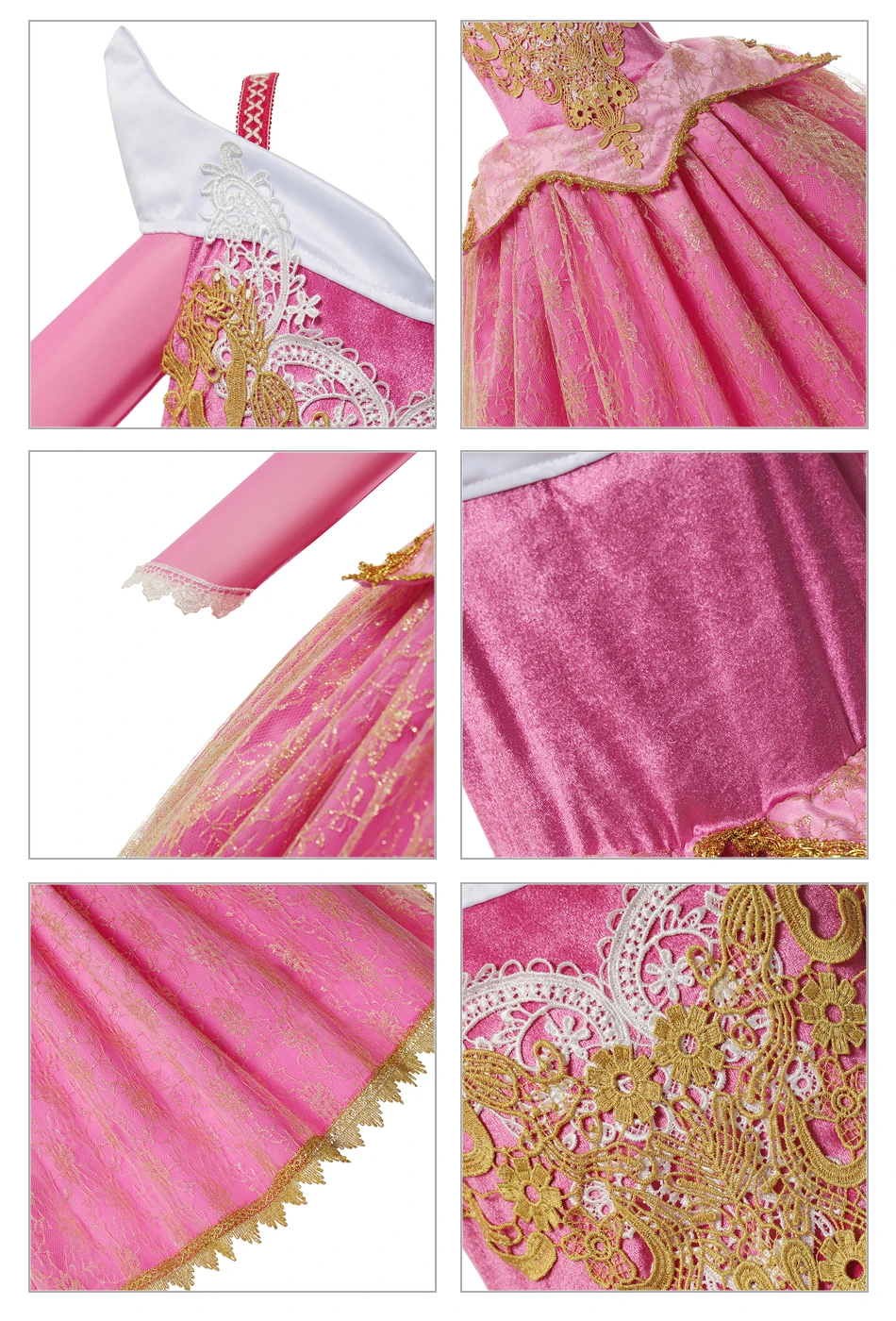 Счастливая Девочка Принцесса Аврора костюм с длинным рукавом с открытыми плечами Спящая красавица Хэллоуин вечерние нее платье детская одежда на день рождения