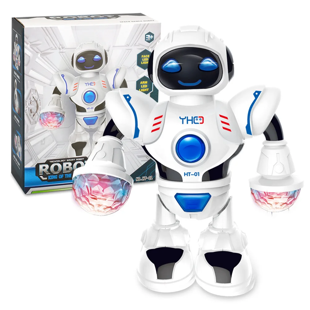 Особенности:ДинамическийЭтот робот Оснащен световыми лампами, фонариками для рук, его руки могут качаться с музыкой. И он может показать крутые танцы. Это может принести радость детям, и это хороший партнер в росте детей.НавигацияРобот может воспринимать окружающую среду и легко перемещаться. Робот может регулировать свое направление, не сталкиваясь с объектами.Крутое освещениеРобот оснащен крутым дисплеем вспышки, а рукоятка имеет крутой светодиодный светильник проекции. Ночь с роботом будет более красивой.ПерсонализацияНоги и руки роботов реагируют, и они могут двигаться и вращаться. Его руки и ноги могут двигаться с музыкой. Ноги могут поддерживать баланс.Характеристики:Тип изделия: танцующий роботМатериал: пластик + электронный оригиналЦвет: белыйКоличество: 1 шт.Аккумулятор: 3 * AA батареи (не входят в комплект)Подходящий возраст: 3 года +Размер товара: 19,5*8*22 см/7,66*3,14*8,65 дюйма (Д * Ш * В)Вес: 360g/12,7 oz